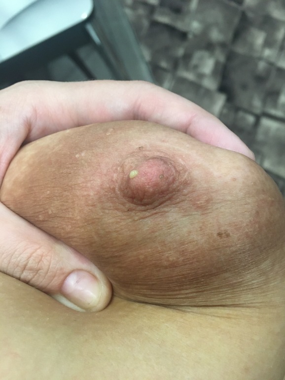 У меня были коричневые выделения из груди, даже к онкологу отправляли, но сказали, что просто мастопатия. Я бы посоветовала к дежурному маммологу сходить Вам, на всякий случай