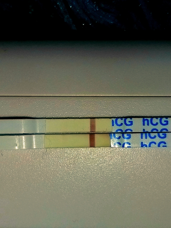 Полоски видно, но этим тестам я бы не верила, они мне всегда // показывают. А вот в комментариях такой тест хорошо показывает розовую полоску, так что скорее всего это беременность 💐