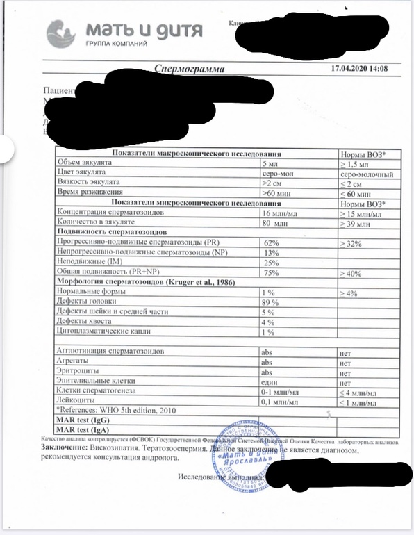 У нас так было ( тератозооспермия 1% нормальных... и вискозипатия( вязкая сперма) за год приема бадов и смены образа жизни морфология поднялась до 7 % и нормозооспермия , но вязкость не ушла, и за 3.5 года одна Б*Б в феврале , и все((((((