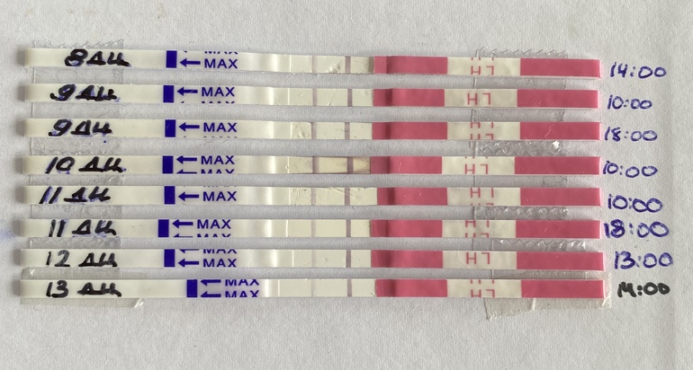 Извините просто фрау точно также выглядит. И тоже так странно при всём ощущении овуляции не показал сегодня жирную полоску. А что касается ваших тестов то очевидно овуляция была на 10 дц, и смысла продолжать тесты нет. Я надеюсь вы с мужем успели все свои дела ?)))
