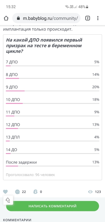 На какой ДПО вы увидели первого призрака в беременном цикле?