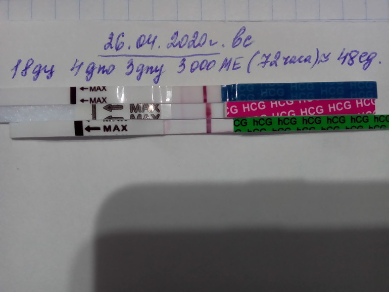 У меня укол ХГЧ 3000 МЕ 3дпу, начали бледнеть, все три теста в одну мочу