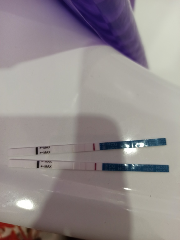 Замучила тестик и похоже действительно днём тесты ярче показывают, с чем это связано не понятно, но факт остаётся фактом. Конечно он поярче чем вчерашний утренний, но не на столько как дневные🙈😂😂😂. Ну будем надеяться, что это просто тест тупой и с крошкой все хорошо.