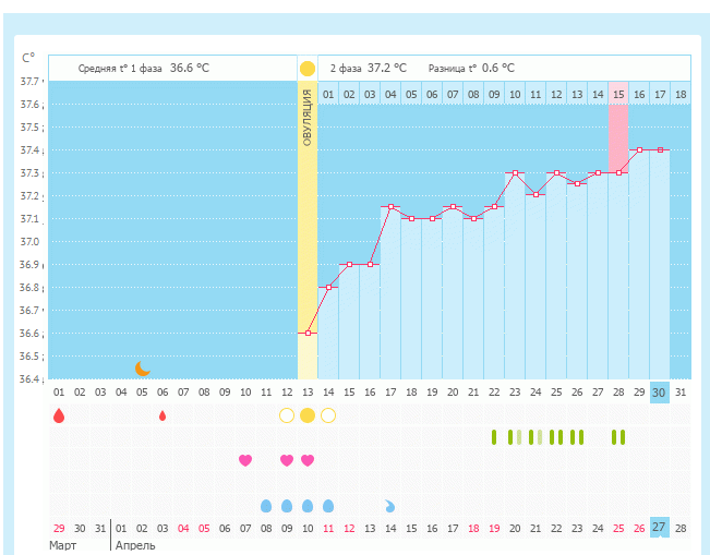 В этом цикле решила ловить О по тестам. Потом все же решила еще и базальную температуру измерять. Выставила ее по своим ощущениям и по тесту.