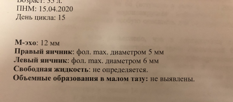 Говорили, что не будет, потому что нет фолликулов!!!! Увидели два, 5 и 6 мм. Всё.