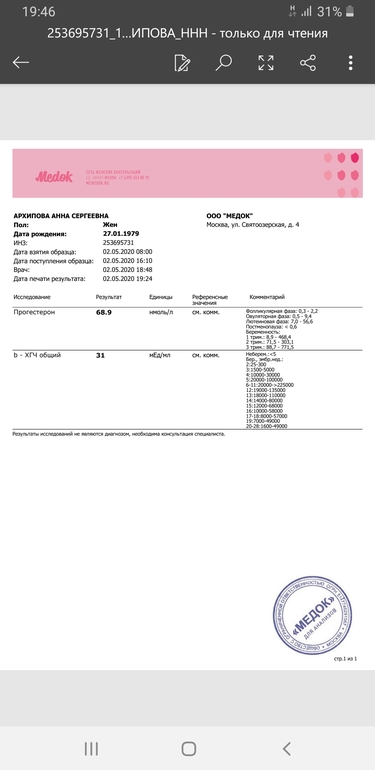 Картинка с анализом маленькая, не могла увеличить, увидела сначала значение 68,9, обрадовалась,что все хорошо. А потом комменты почитала про 31, вгляделась...