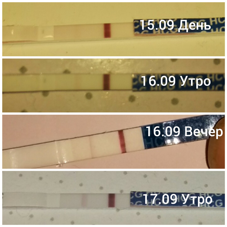14.09 вечером и 15.09 утром полосочки еле видные были. И не обязательно по утрам показывает ярче. Я уже писала одной девочке, которой узистка не могла найти эмбриончик- просто надо поверить, что малыш уже внутри, здоровенький и любимый! Сейчас нужны эндорфины, а не адреналин! 😘 Все будет хорошо!!!