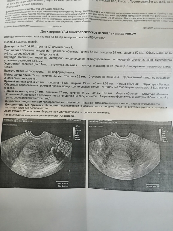 Я увидела только на УЗИ (когда пошла узнавать маточная ли Б) эндометрий 13 мм, ЖТ около 21 мм и ПЯ 12 мм.