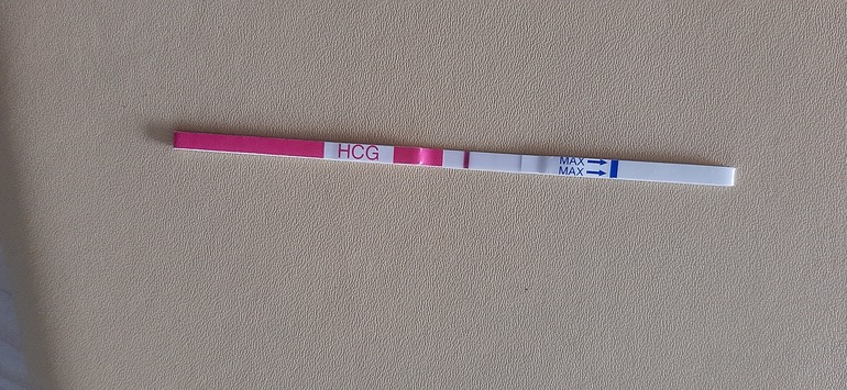 Полосочку видно, а что это не реагент вам никто точно не скажет. Проверьте другими тестами или на хгч, если М не придут завтра.