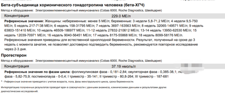 Вот прилагаю фото результата, по нормам лаборатории все в норме, только соответсвует 4 неделям
