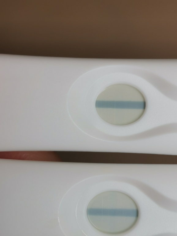 На нижнем хорошо видно. А вообще этот тест на просвет не смотрят, так как там место для второй полоски с обратной стороны ограничено пластиковой стенкой теста. Если разберёте, то поймёте. То есть на просвет всегда будет видно, но только не полоску, а тень от пластмассы.