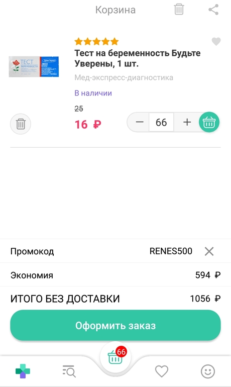А приложении EAПТЕКА сейчас скидка в 500р при покупке от 1500) Но это выходит если кидать в корзину 66 тестов)))) что бы до 1500р добить)
