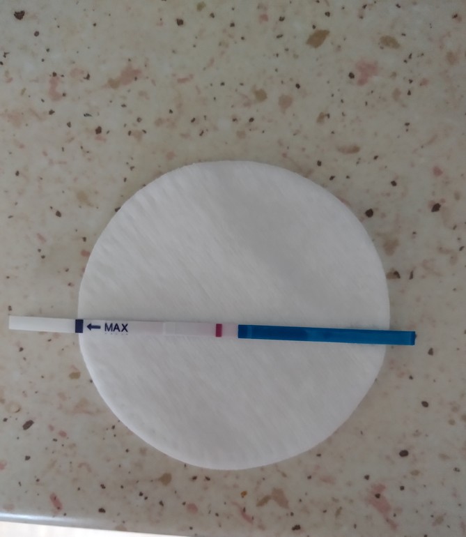 Больше похоже, что это реагент растекся уже после места, где полососка должна быть, к сожалению. Наблюдала такое на своих тестах тоже (эви, фрау). На некоторых она даже не исчезает, так хорошо окрашивает.