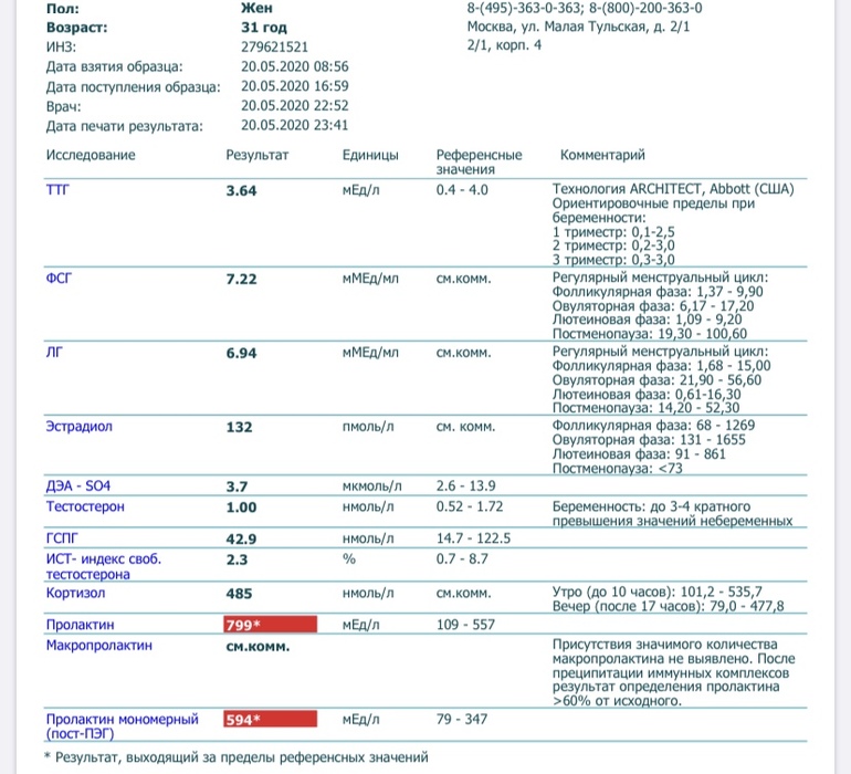 Решила ещё сдать анализы на гормоны. Сдавала на 4 ДЦ.