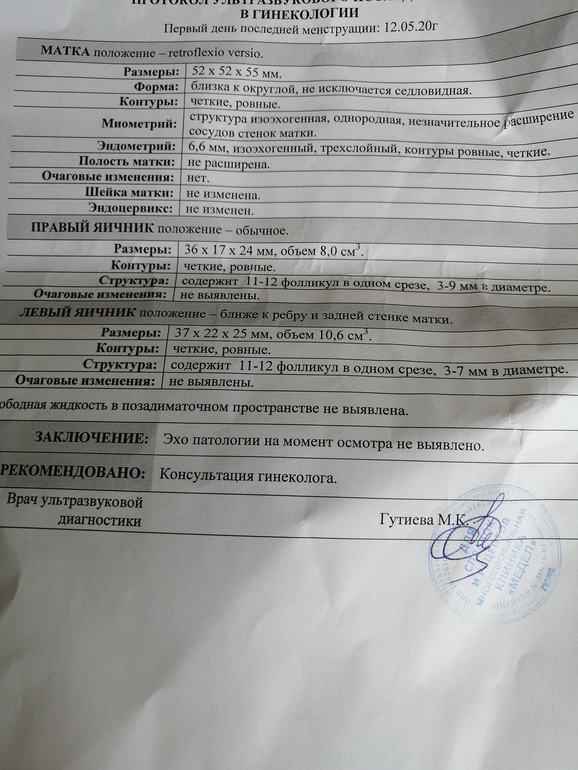 Узи делала 19. 05 на 8 д.ц, гин сказала что на этот день цикла все норм. 25го пойду на повторное узи.