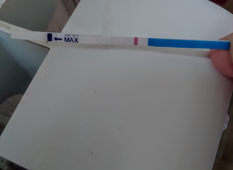 На месте контрольной вообще белая полоса, т.е.тест кристально чист, вокруг полосы просто какие то потёки розовые виднеются, но это не то. Так что успокойтесь и настраивайтесь на след цикл)