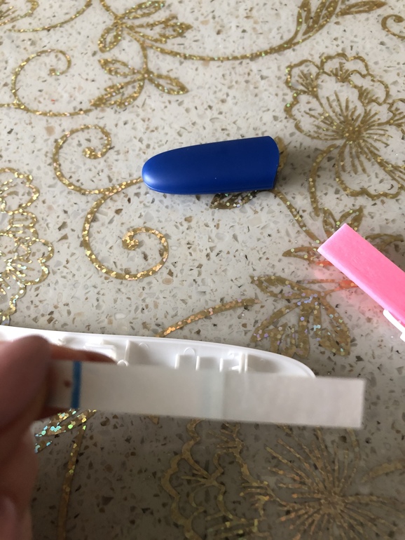 Всем добрый день кто разбирал тест клеа блу, кто нибудь замечал эту синюю полоску? 1 день задержки вчера бт была 37, сегодня 36,9. Очень надеюсь что все таки получилось, овуляция поздняя где то на 20 дц, сегодня 33 дц