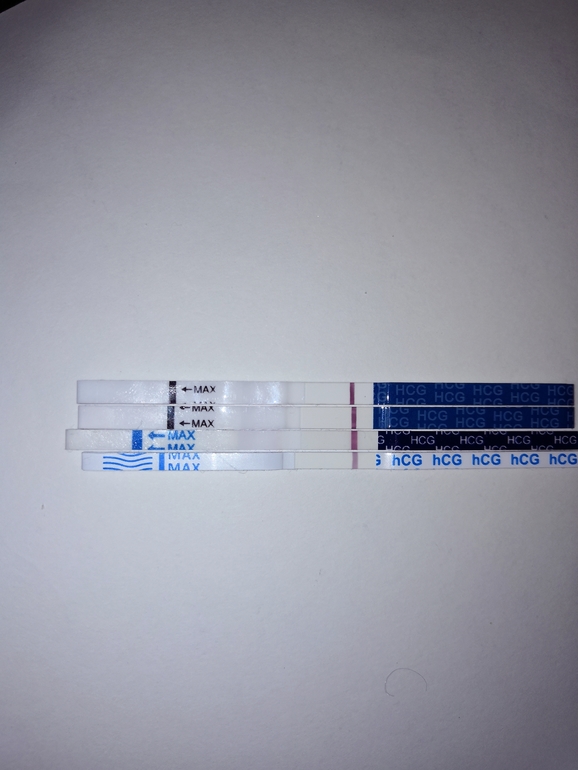 Сегодняшние все тесты(с низу в вверх) , месячных нет, немного поболел низ живота, может и пойдут, уже бы хоть что нибудь было, всему буду рада, либо эти задержки меня как то настораживает, завтра наверно запишусь к своему врачу, давно к ней хотела уже, последний раз была осенью
