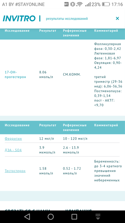 Пересдайте 17-он на 2-4 д.ц. Если будет опять выше нормы - идите к эндокринологу, возможно, как писали ниже, надо будет потом проверяться на врожденную дисфункцию коры надпочечников(генетический тест либо тест с синактеном-депо). Гормон 17-он влияет и на зачатие и на вынашивание. Из-за высоких показателей часто случаются выкидыши. Или отсутствует овуляция вообще. Тогда сажают на глюкокортикостероиды на время планирования и беременности. Пугать заранее вас не буду, но не оставляйте этот гормон в покое, он важен и на многое влияет.
