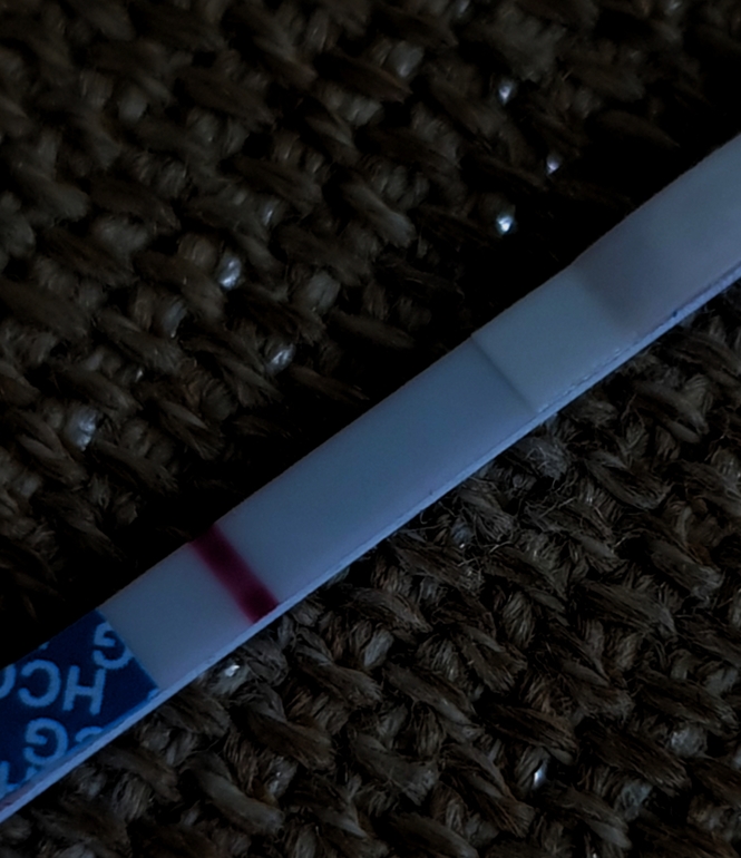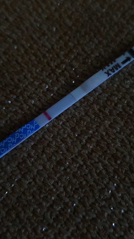 Вроде когда разглядывала что-то цепляло взгляд, но явной полоски нет и после высыхания ничего не видно. Сейчас открыла фото и прям кажется, что на тесте что-то есть. Делала днем. Думаю еще завтра вечером повторить, как думаете, это реагент или мое больное воображение?