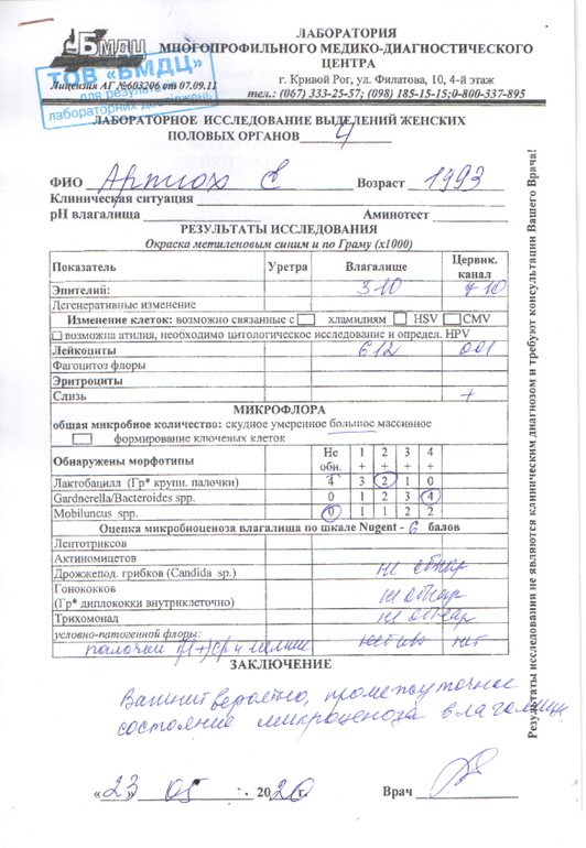 Спасибо за разъяснения)Это мне прислала лаборатория,а к врачу только в субботу