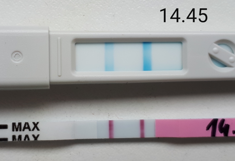 Вчера к вечеру начали ярчать тесты на О, и у меня сразу паника, слишком рано, фоллик еще не вырос.... Сегодня утром перед работой в 4.30 сделала, а он очень яркий, клиаблю не делала. Сделала в 6.50 в паузу на работе, клиа пустой и мне показалось и обычный уже не сильно то поярчал. Расстроилась, что может такой быстрый пик ЛГ уже был ночью (было пару циклов с очень быстрым пиком, и не сильно ярчали и быстро бледнели). Пришла с работы и сделала еще тесты, и тут клиа улыбнулся и ярче полоска стала. Вот тут я удивилась))) а вечером в 18.30 еще ярче))) вот же я балда! А уже понапридумывала себе всякого))