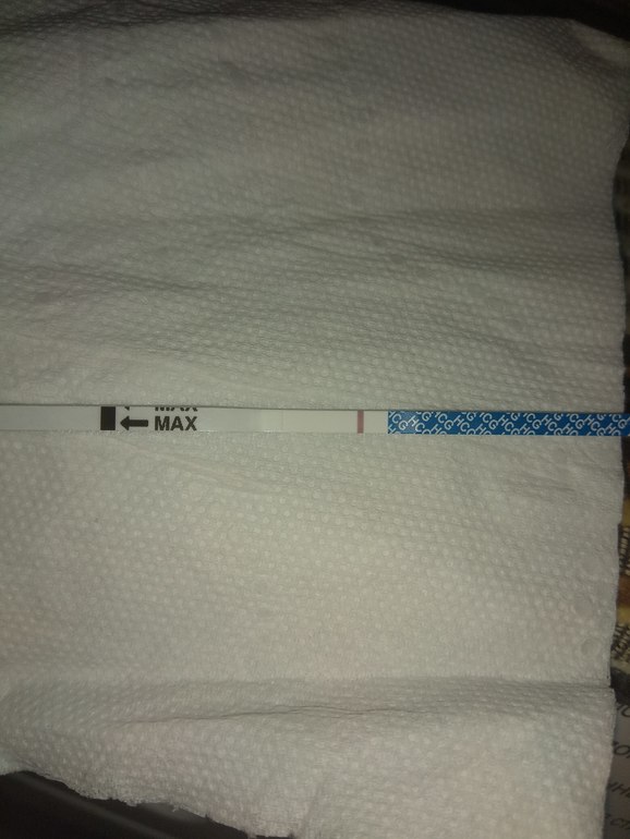 К сожалению, на этой фотке ничего не видно, лучше фоткать тест когда он ещё мокрый, если он уже высох в большинстве случаев появляется полоска места испарения, бесцветная, она может запутать и дать ложные надежды. Плюс Этот тест ужасный тормоз, попробуйте другим.