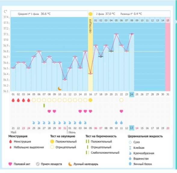 Спасибо, но мы особо и не планировали в прошлом цикле . Я просто написала к тому , что смотрела на график и думала как и вы , что овуляции вообще не было , а она мало того что была так и зачатие произошло , просто на уровне имплантации сорвалось .