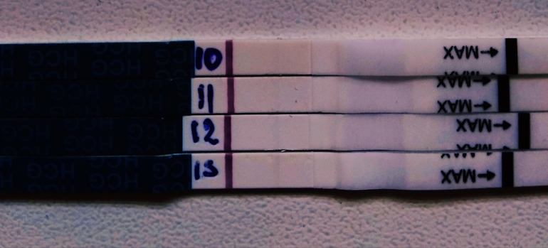 Многие из вас видели мои слабые полосочки с 8 дпо,которые не ярчали. Я точно настроилась на бхб и на новый цикл. Вчера начало мазаться, и я в каком то смысле вздохнула с облегчением. Живот очень болит как будто из меня уже льёт и рези в матке ,а они всё не начинаются ,всё еле мажется.. Я решила сделать ещё раз тест, надеясь на чудо какое то..не знаю. Заодно и тест на О..Фиг его знает,что творится в мозгу у планирующей...(