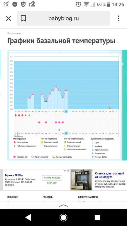 Пока нельзя сказать 100%, на графике одна фаща еще. Если была, температура пойдет вверх и через 2-3 программа выставит овуляцию 🤩