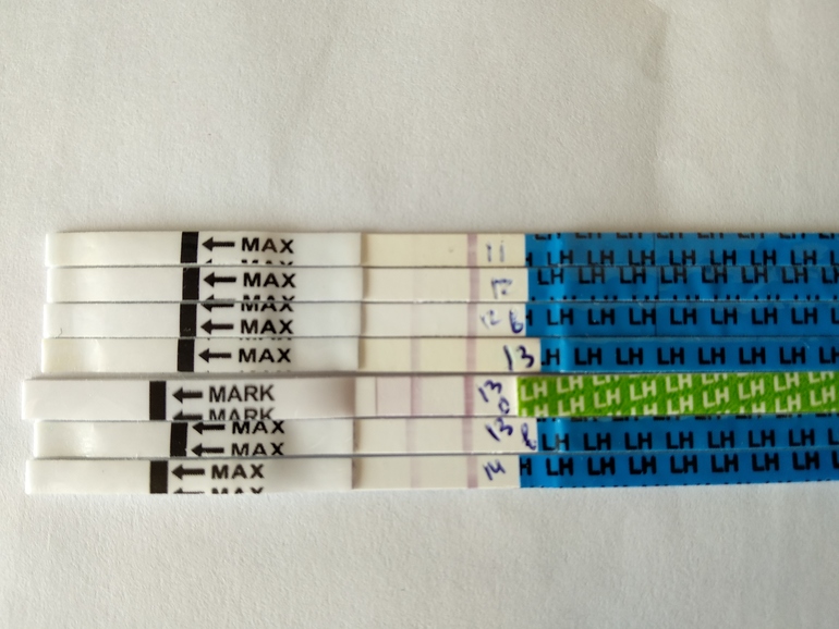 Овуляция( тесты на овуляцию)Вообщем вот и весь вопрос. Тесты ниже. Нижний тест сегодня рано утром. Все таки по тестам на 13дц О была? Как думаете?