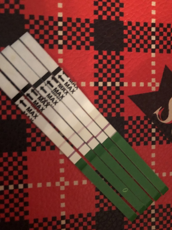 Спасибо 😊 тот что-то вас посередине, по моему самый яркий, может быть это оно? У вас есть фото всех тестов, чтоб сравнить с пустыми? я так вижу у всех яркость разная, не у всех одинаковыми становятся полоски. И ещё, вы когда делаете тесты? Я по насколько раз в день 🙈 практически каждый раз, как иду в туалет, многие просто повыбрасывала 😅