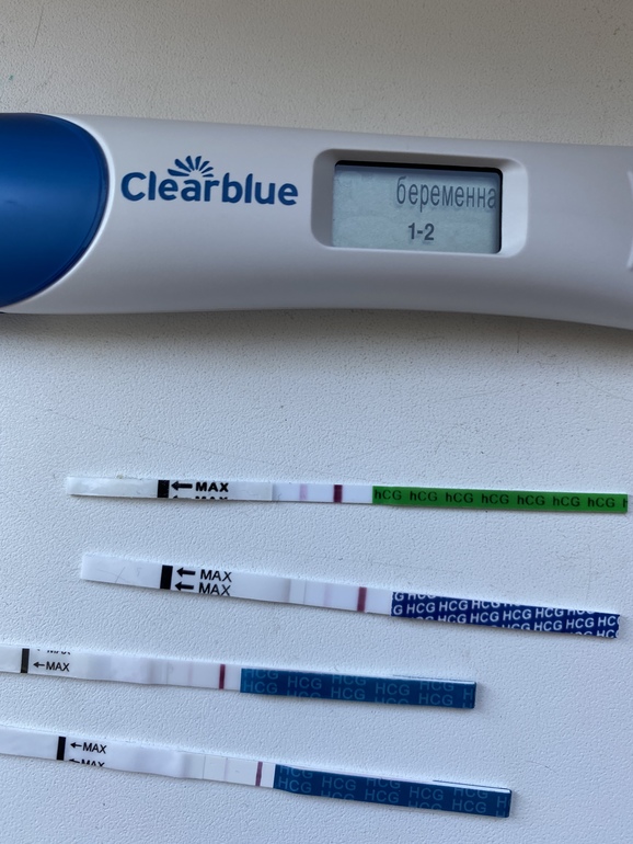 У меня электронный показал, когда на тестах были тонюсенькие ниточки, бледнее ваших раза в 2 точно. Поздравляю😊
