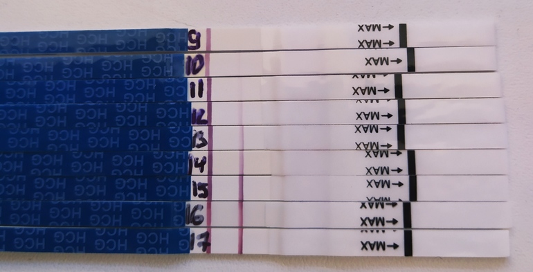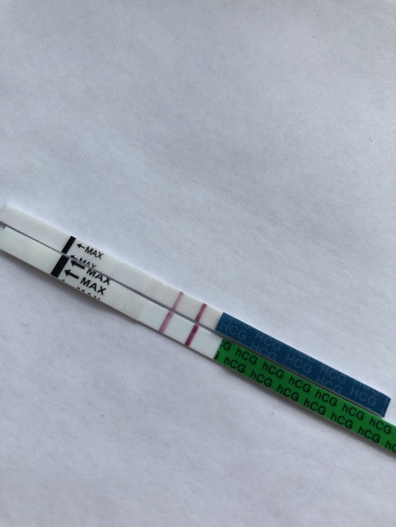 Сегодняшний тест меня подбодрил: тестовая полоска стала чуть темнее, а то вчерашняя от предыдущей не отличалась 😬😅, хотя с 9 по 12 дпо ярчала каждый день.