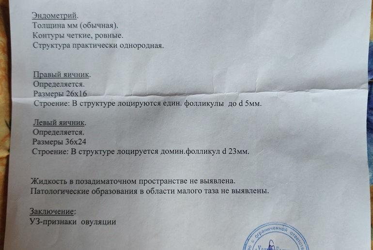 А по какому признаку врач определил овуляцию, если нет жидкости и жт, да и доминантный фолликул присутствует?