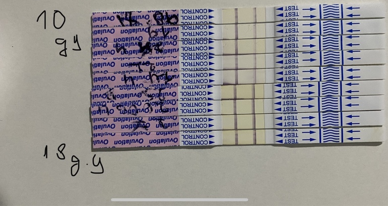 Дорогие, помогите понять, что значат эти тесты. Начала отслеживать овуляцию с 10го дня цикла. И с 15 положительные тесты, полоски ничуть не бледнеют. Что это может быть?