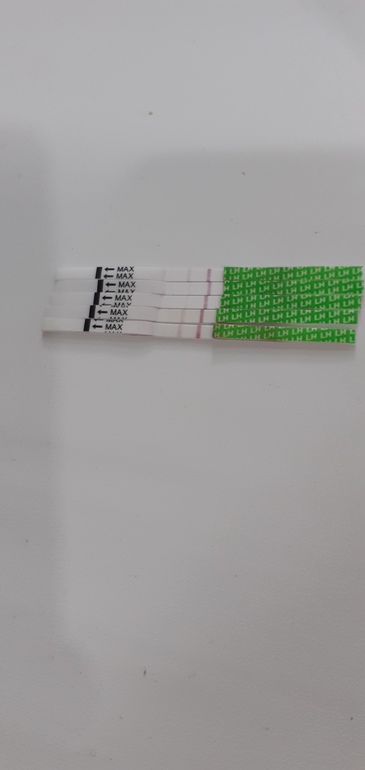 Начинала с 10 ДЦ, (здесь не все тесты так как 10,11,12 ДЦ бледные были, там и полоски нет), делала изначально 2 раза в день утром и под вечер. Утром вообще полоски не было, под вечер появлялась бледная. Уж потом знающие люди сказали, что ЛГ нарастает в течении дня, с утра делать его бессмысленно. Нужно делать в промежуток с 10.00 до 18.00 часов Вот последние тесты я так и делала, 13,14,15 ДЦ, на 13 была еле заметная полоска, на 14 сравнялась с контрольной. а на 15 уже стала ярче контрольной, на 16 ДЦ такая же как и на 14 по цвету (но ее нет на фото). итог таков, при цикле 28 дней. делать с 10 ДЦ в районе 15.00-18.00 раз в день.