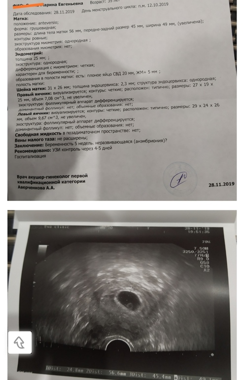 Пя 18 мм, жм 5,6 мм, эмбриона нет