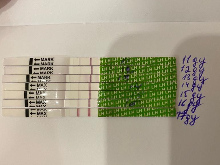 Овуляция( тесты на овуляцию)Добрый день, цикл 28-30 дней. сегодня 17ый день цикла. мониторила овуляцию тестами с 11 дц, Раньше всегда повышение гормона ЛГ было на 12-13 день. В этом цикле только на 17ый день четких две полоски. Это ведь оно?