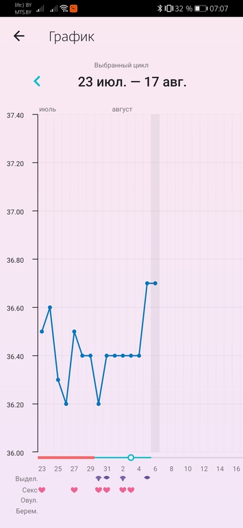 ничего не тянет особо, так иногда прострел))) Мой непонятный график, тут кто-то мне отвечал, что овуля 5 могла быть, посмотрим)?