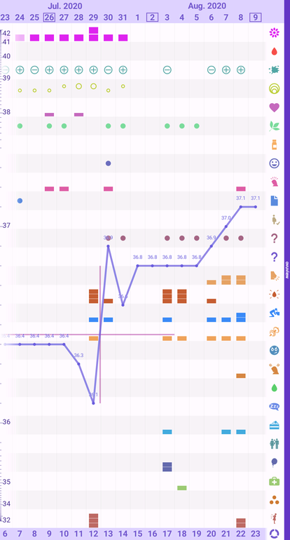 Вот такой он....Мой обычный : первая фаза, падение при овуляции, подъем и вторая фаза, потом падени6 во второй фазе на день, подъем и снижение перед месячными.... такое поведение бт не типично никак
