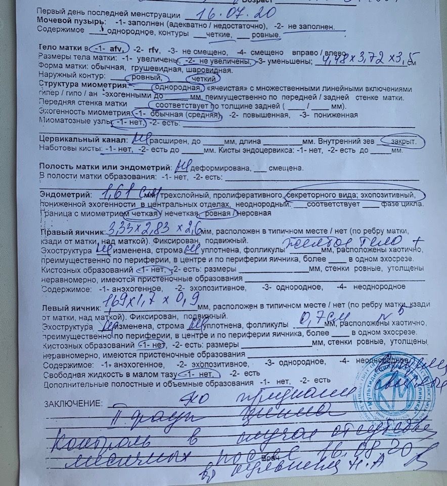 Заключения врача прикрепляю, жт есть, эндометрий хороший.