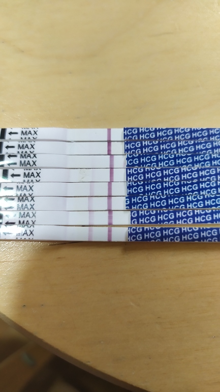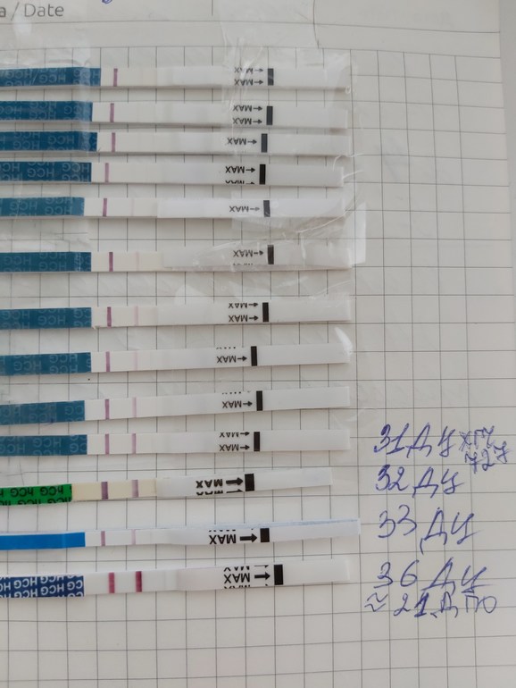 Главное что полоска есть. Разные ресты, по-разному показывают. Я вчера разгребала фотографии на старом телефоне. наткнулась на тесты :)) я не помню, какой это был ДПО, но тест на второй день был бледнее, чем на первый, на третий день примерно такой же как в первый, на четвертый день снова как во второй. Слава Богу на пятый день успокоилась, всё было хорошо. Тест не показатель концентрации ХЧГ. Если он реагирует на уровне 20 (предположим в моей истории это было в первый день 20), то на пятый день должно быть (20*2*2*2*2) 320, и почему-то полоска была еле-еле. Успокойтесь и здоровья вам обоим :)