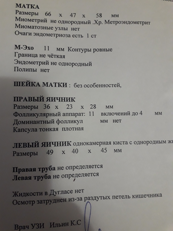 В чем вопрос? Метроэндометрит не знаю на основании чего был поставлен, может клиника у вас есть воспаления? Эндометриоз тоже... Вообще какое то УЗИ неоднозначное, если честно. Эти диагнозы ставятся гистологически. Может вы жалоб наговороли ему и на основании их были поставлены диагнозы эти... Я бы к другому врачу сходила.