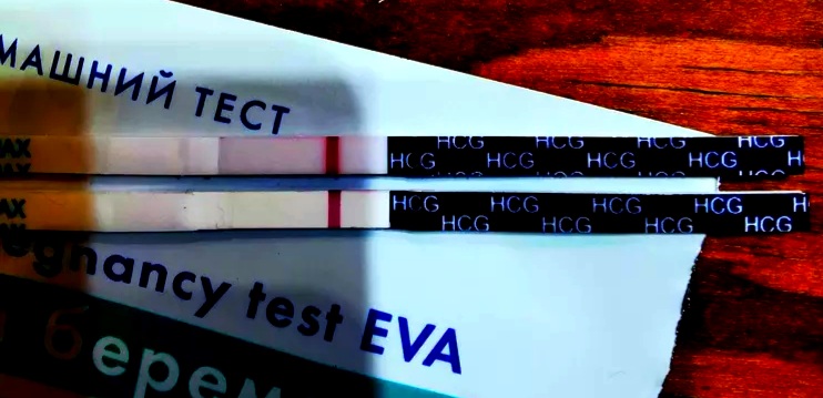 Первое фото фрау. На фрау верхний тест точно с полоской, потому что я его делала 2 цикла назад, когда выходил укол. Нижний тест фрау сегодня. Положила вместе для сравлениния. А второе фото это тесты ева. Первый раз их взяла
