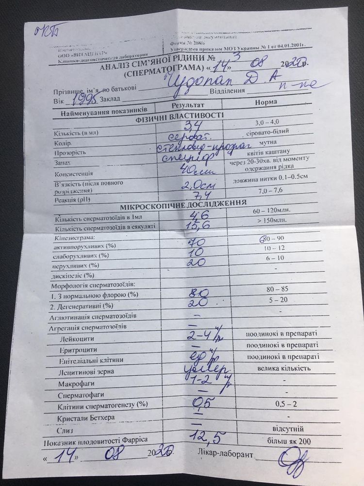 Я конечно не знаю но микроскопические исследования не очень там показатели от туда и последнее заключение. Не вижу расшифровку по Крюгеру???