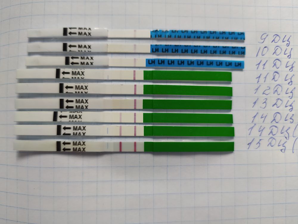 Овуляция( тесты на овуляцию)Девочки, сегодня 5 ДЦ, начали тянуть обо Я. Сдела тест на О, вот результат. Такой тест в прошлом цикле был только на 13 ДЦ, до 13 ДЦ вобще пустые были. А сейчас только 5 день... Чего ждать то? Обычно О на 16-17 ДЦ. В прошлом была на 16 ДЦ. А тут что, ранней О попахивает?))) Ниже тесты с прошлого цикла.