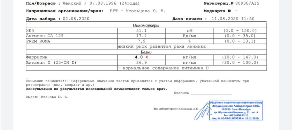 Врач узист параллельно оказалась гинекологом, назначила мне анализы, сказала с ними прийти на прием. Все сданные анализы ниже