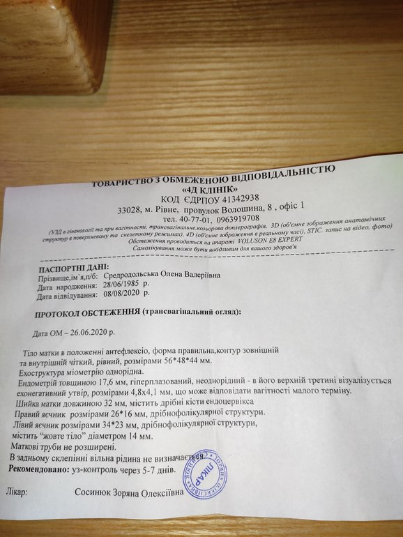 , еду довольная рассчитываю услышать сердечко. УЗД на том же аппарате, другой врач: в трубе ПЯ 23*16мм