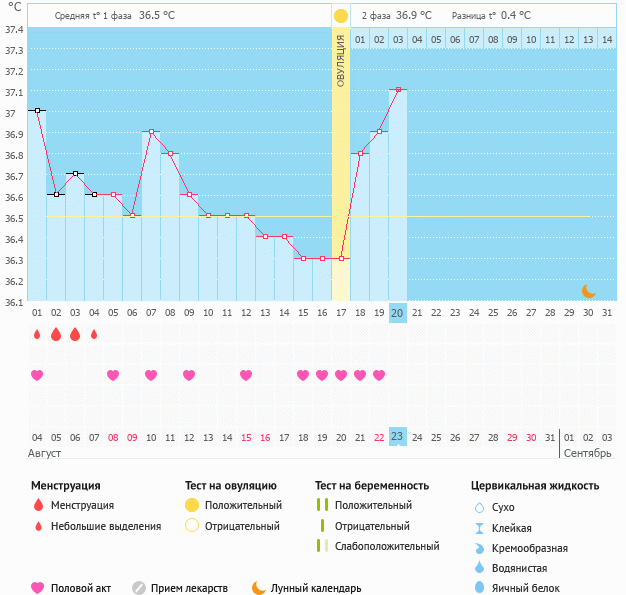 Оля..тьфутьфу.....красотища! Оля,у меня вопрос...бт продолжаю меритьь,даже не знаю ,зачем,так как гиня на узи сказала что овули в этом цикле не будет....но я ведь упертая....вопрос...отчего может скакануть и поднимать бт во второй половине цикла...если овули не было...я думала что только овуляция заставляет ее подниматься...?....у меня на узи были фоллики по 5 мм...на 12 день цикла...это 15 августа...сегодня 23 августа....вот график....как смогли фолики вырасти быстро? или